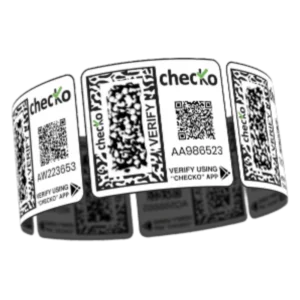 Each Checko label is made using an intertwining of randomly generated 3D features and 2D code. These varieties of 3D features are generated using a patented technology that makes them physically unclonable.