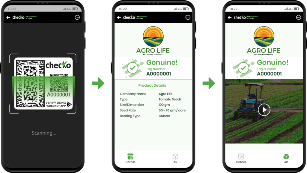 Like human fingerprints, each checko label is unique and copy-proof, giving unique identification to each product which can be tracked easily in the supply chain.